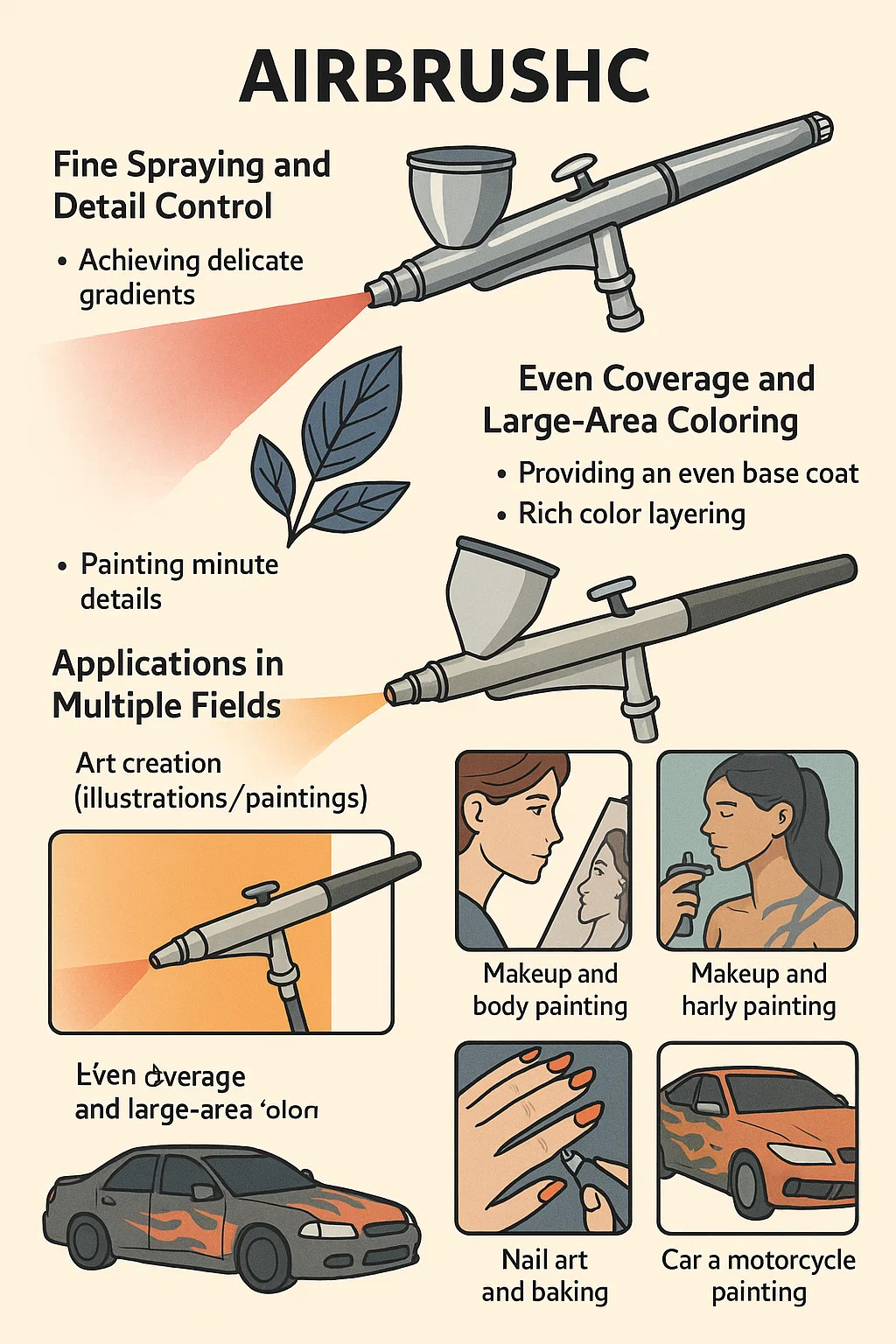 Airbrush mají širokou škálu aplikací, včetně následujících hlavních oblastí: