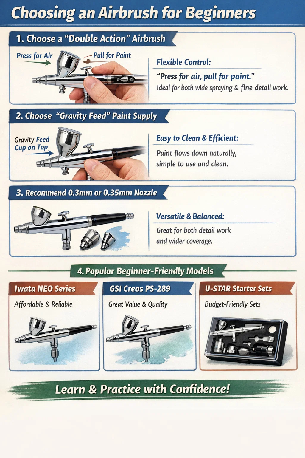 Zde je několik praktických tipů pro výběr airbrush pro začátečníky: